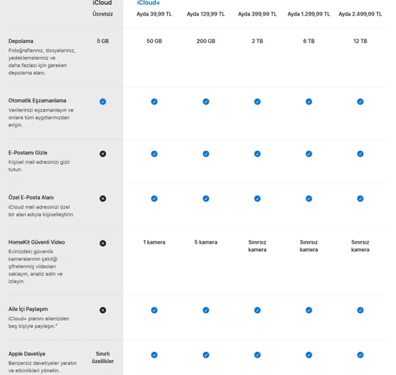 Alınan kararla birlikte iCloud+ abonelik paketlerinde ciddi zamlar yapıldı. Yeni fiyat listesine göre: