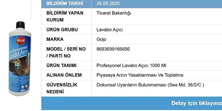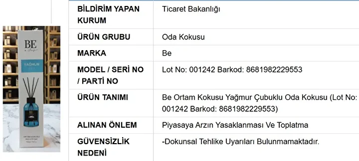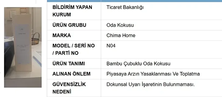 Ticaret Bakanlığı, Güvensiz Ürün Bilgi Sistemi üzerinden sağlık riski barındıran lavabo açıcılar ve oda kokularını kamuoyuna açıkladı.