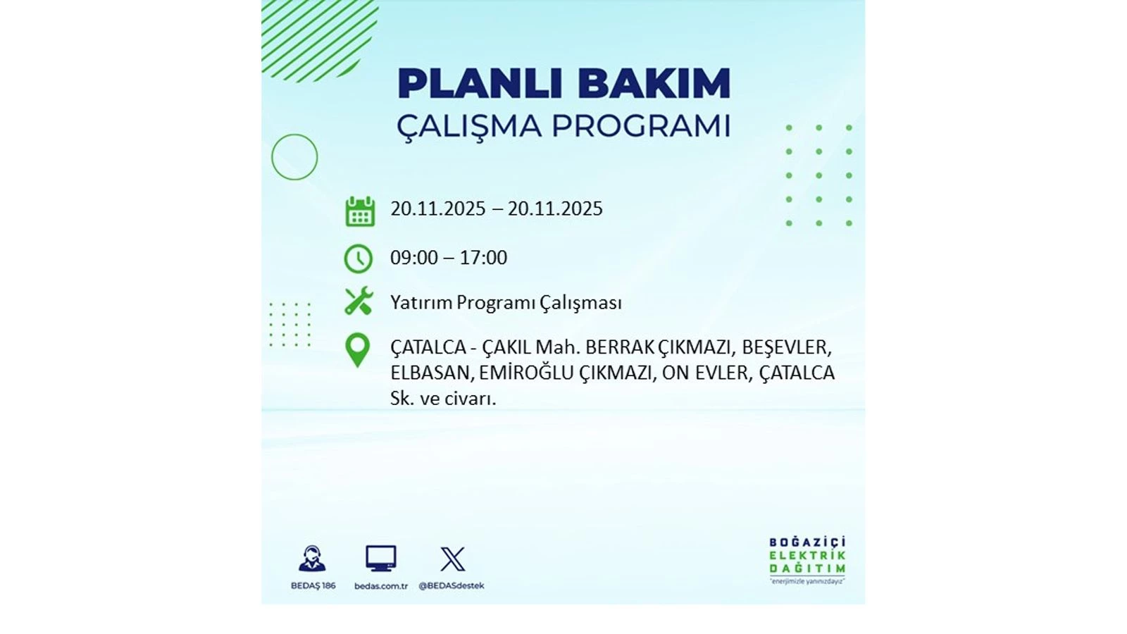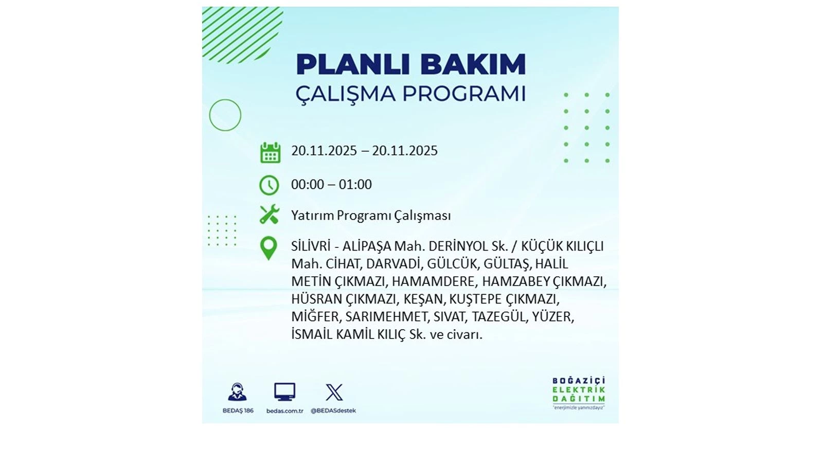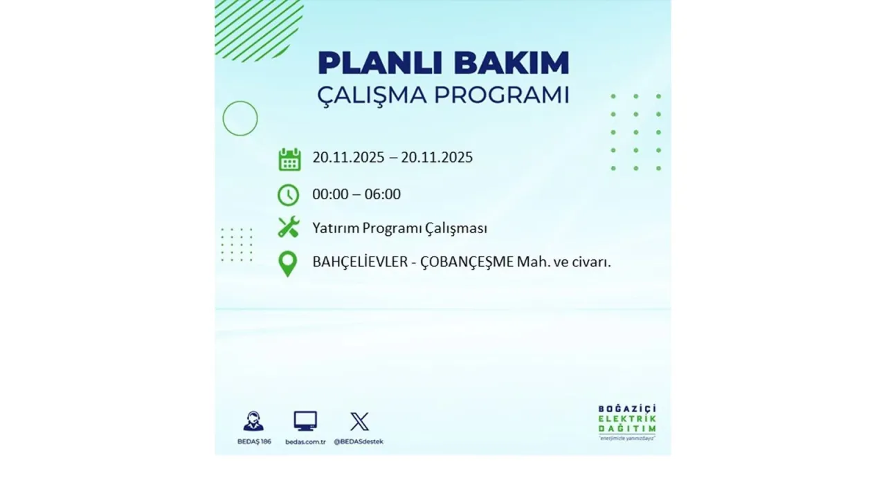 Avrupa yakasında uygulanacak planlı elektrik kesintileri ise BEDAŞ’ın resmi internet sitesinde yer alıyor.