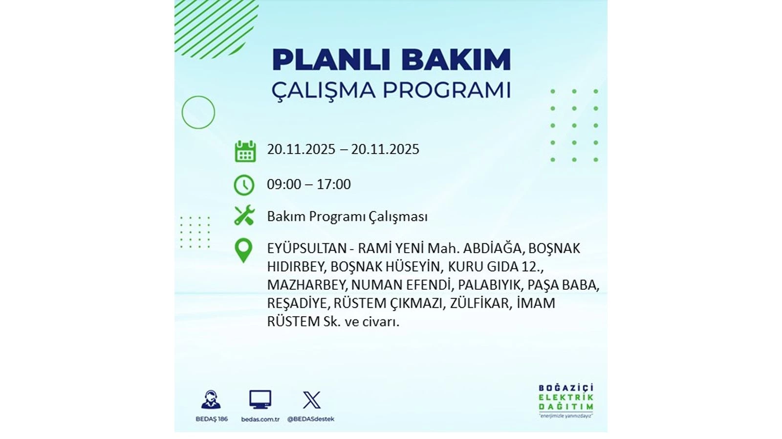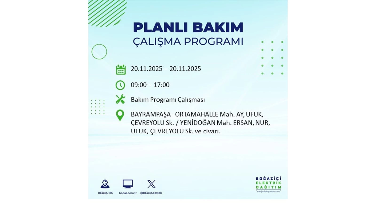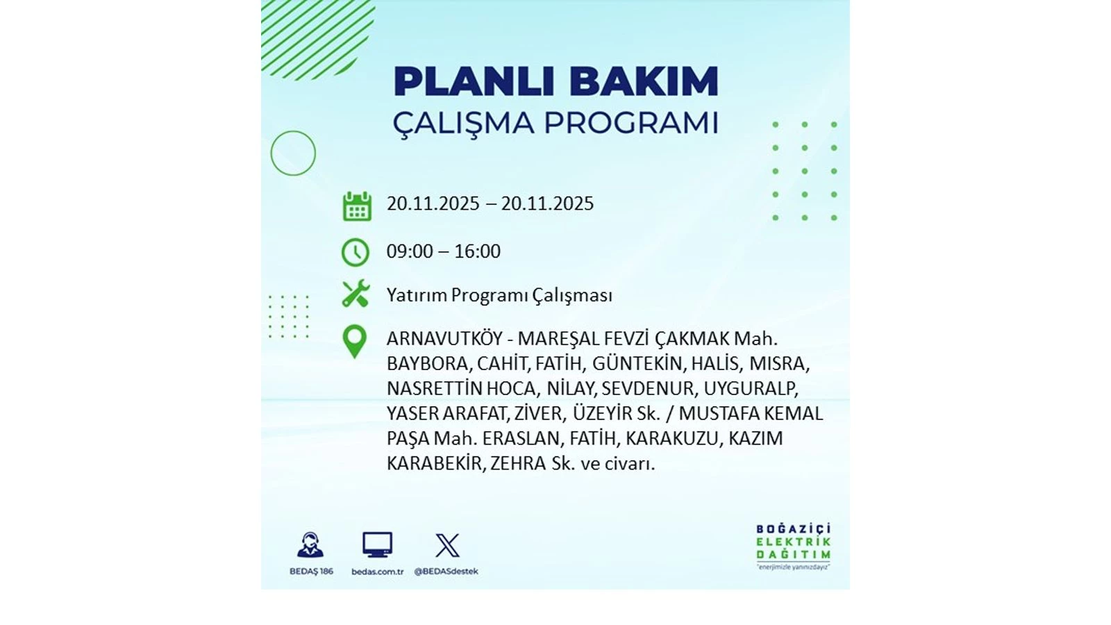 Avrupa yakasında uygulanacak planlı elektrik kesintileri ise BEDAŞ’ın resmi internet sitesinde yer alıyor.