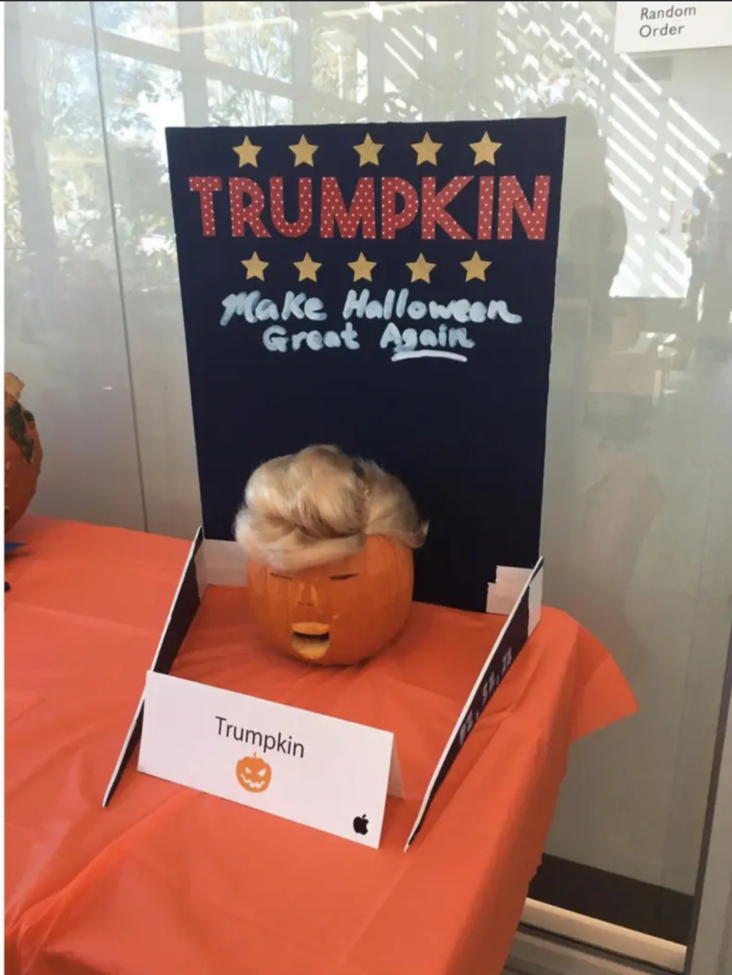 Bununla birlikte ‘Trumpkabağı’ da dikkat çekti. Trump’ın ‘turuncu’ olarak tasvir edilen deri rengine gönderme olduğu tahmin edilen Trump şeklindeki balkabağı, fotoğraflarda görüldü.